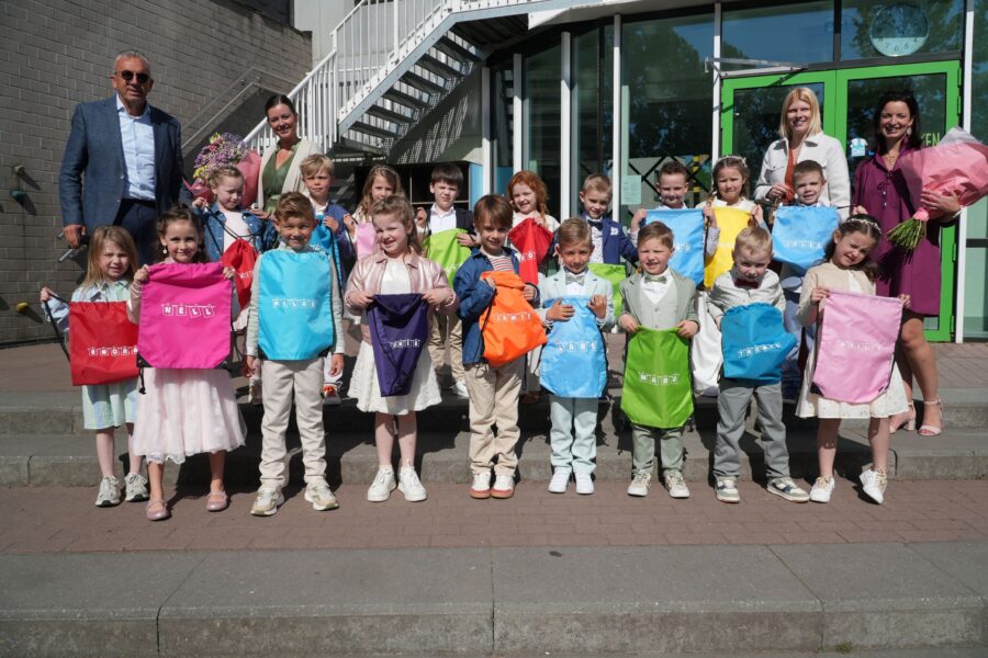 Als kers op de taart ontvingen alle eersteklassers uit handen van hun juffen een leuk geschenkje, een blijvende herinnering aan deze bijzondere dag. Voor de communicanten van Klim-Op Bavegem werd het zonder twijfel een onvergetelijke Eerste Communie, een dag vol warmte, verbondenheid en mooie herinneringen.