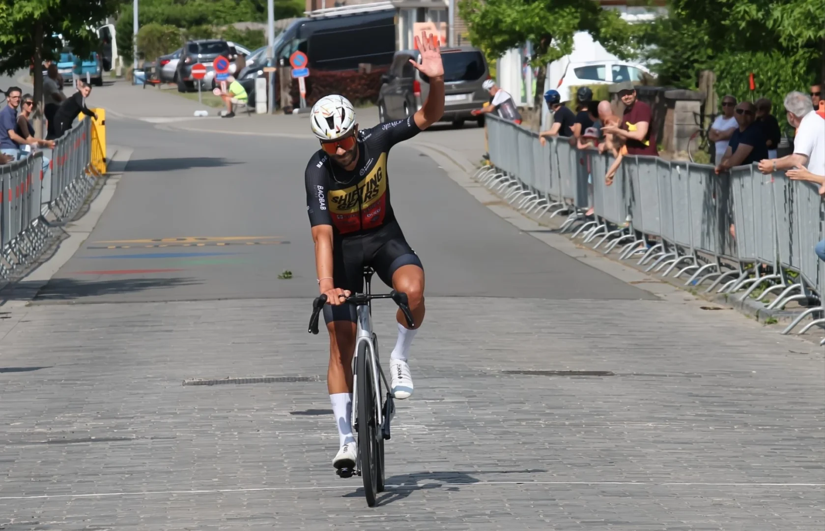 Op zondag 15 juni kleurde Bavegem zwart, geel en rood. In zijn nationale kampioenstrui liet Elias Van Breussegem geen twijfel bestaan over zijn ambities in de achtste Memorial Serge Baquet, aangevuld met de ereprijs Schepen van Sport Jo Vermeulen. Net als in 2024 stormde de coureur uit Oudenaarde solo over de streep en schreef daarmee zijn zesde overwinning van het seizoen op zijn palmares. Een prestatie die werd bejubeld door een publiek dat massaal kwam opdagen op deze zonovergoten koersdag. Meteen pakte Elias de volle buit van 40 punten, goed voor dubbele punten aangezien de wedstrijd meetelde met medewerking van onze organisatie. In het regelmatigheidscriterium bij de eliterenners en beloften doet hij zo een uitstekende zaak en zet hij een stevige stap richting het verdere verloop.