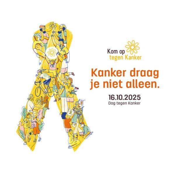Vandaag, donderdag 16 oktober kleurt Vlaanderen opnieuw geel voor de ‘Dag tegen Kanker’, een initiatief van Kom op tegen Kanker dat jaarlijks mensen samenbrengt rond één krachtige boodschap: kanker draag je niet alleen. Overal in het land tonen mensen hun solidariteit met kankerpatiënten en hun naasten door het dragen of delen van het gele lintje — hét symbool van hoop, verbondenheid en steun.
