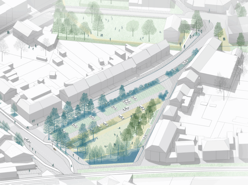 De oorspronkelijke ambitie voor het Moerbekeplein blijft overeind: veel groen, veel ruimte voor ontmoeting, veel speelruimte.