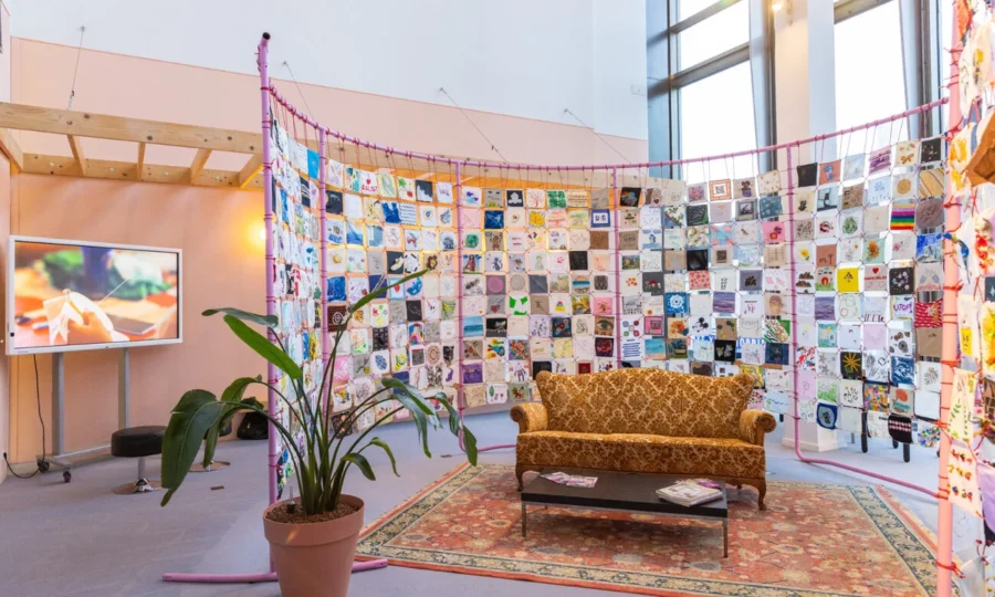 Kunstenaar MAIMAI Maaike Van Den Abbeele gaf de aanzet voor het LAP!-kunstwerk. “Het is opgebouwd uit wel 1.000 lapjes, zo’n 800 mensen hebben deelgenomen”, vertelt Van Den Abbeele. “Sommigen maakten tot wel vijftig lapjes. Het doel van LAP! was vooral om mensen samen te brengen, jong en oud.”