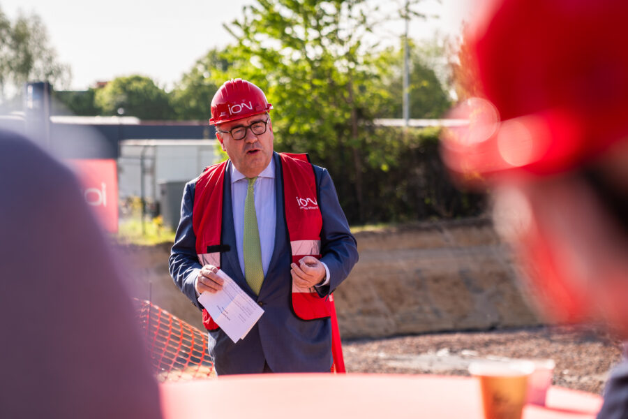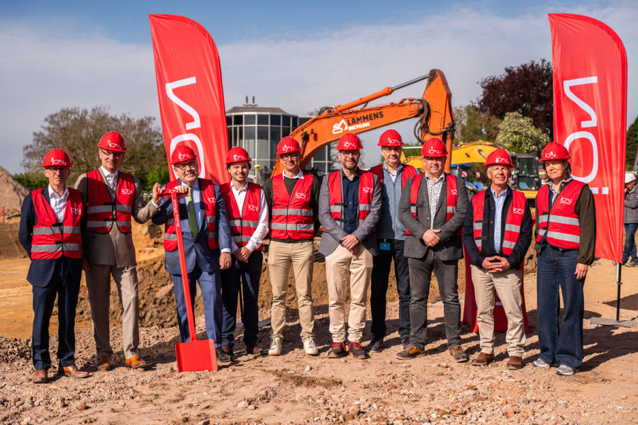 Uitgerust met een werfhelm, fluo hesjes en een plooimeter zakten 13 leerlingen van de bouwopleiding van GO! Horizon vanmorgen af naar de 1 hectare grote bouwsite. Samen met onder andere burgemeester Christoph D’Haese kregen ze er een korte rondleiding en mochten ze daarna symbolisch de eerste spade van het project in de grond steken. De site ondergaat een volledige transformatie. Zo wordt er niet alleen een gloednieuw kantoorgebouw opgetrokken, ION voorziet ook twee woongebouwen met in totaal 17 appartementen.