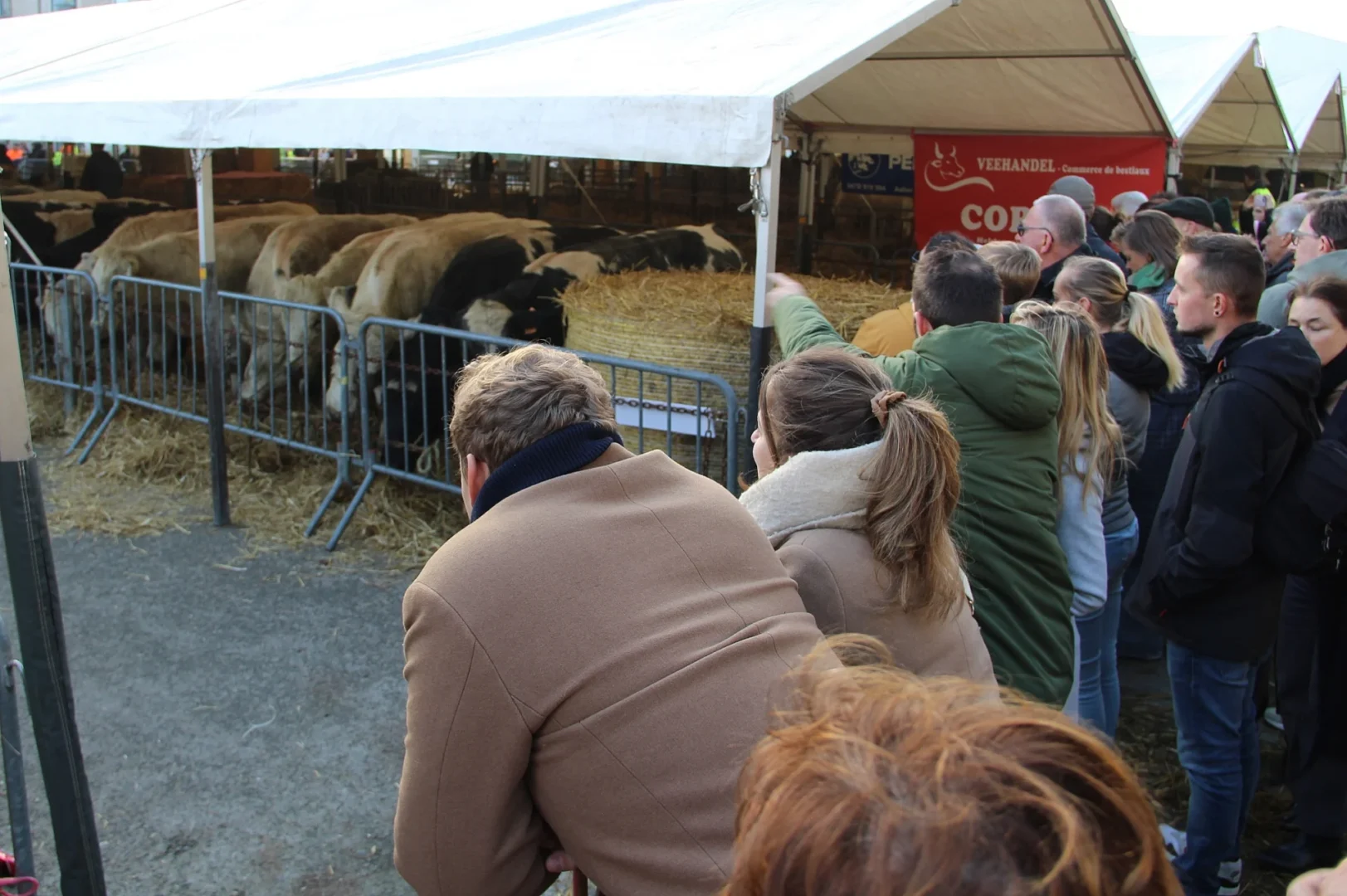 In Sint-Lievens-Houtem staat vandaag en morgen alles in het teken van de historische jaarmarkt. Traditioneel is de enorme veemarkt en de paardenkeuring de grote publiekstrekker. Maar ook de feesttent op het marktplein lokt telkens weer een massa volk. Daar kunnen bezoekers kennis maken met lekkernijen uit gastland Nederland. Deze middag was het er dan ook gezellig druk. Tegen 14u00 werd het daadwerkelijk op de koppen lopen. De massa probeerde op één of andere manier een glip op te vangen van de vee en paarden die hun opwachting maakte onder de veetenten.