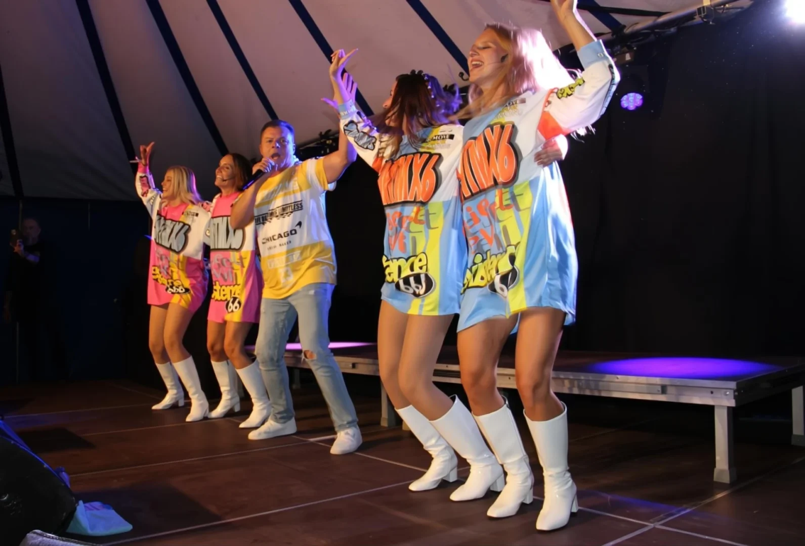 De absolute climax kwam er met het optreden van Swoop. Frontman Filip D’haese en zijn danseressen zetten de hele feesttent op stelten met hun bekende hits en bruisende choreografieën. De regenvlagen die buiten neersloegen werden volledig vergeten binnen de warme, dampende tent. Lichtshows, opzwepende beats en het enthousiaste meezingende publiek zorgden voor een uitzinnig feest. Swoop bracht het publiek tot dansen, zingen en zelfs polonaises door de tent.