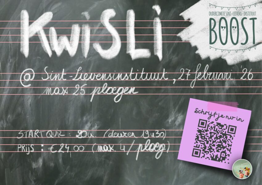 Ook dit jaar organiseert OC BOOST opnieuw zijn populaire KWISLI Quiz. Op vrijdag 27 februari worden quizliefhebbers verwacht in de refter van de school aan het Marktplein 13 in Sint-Lievens-Houtem voor een avond vol hersenkrakers, plezier en gezelligheid.