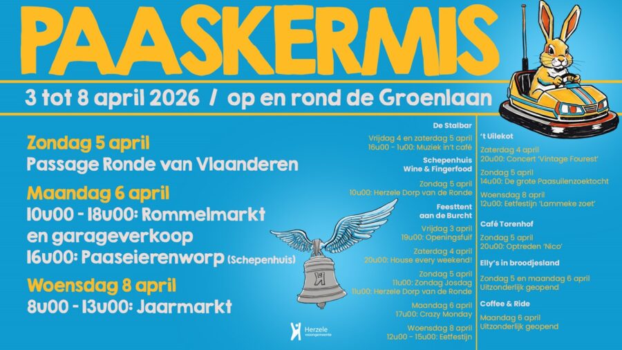 De paasklokken zijn onderweg naar Herzele en dat betekent maar één ding: de jaarlijkse Paaskermis staat weer voor de deur. Van zaterdag 4 tot en met woensdag 8 april 2026 strijkt de kermis opnieuw neer in het centrum van de gemeente. Vijf dagen lang wordt de Groenlaan het bruisende middelpunt van attracties, lekkernijen en gezellige ontmoetingen voor jong en oud.