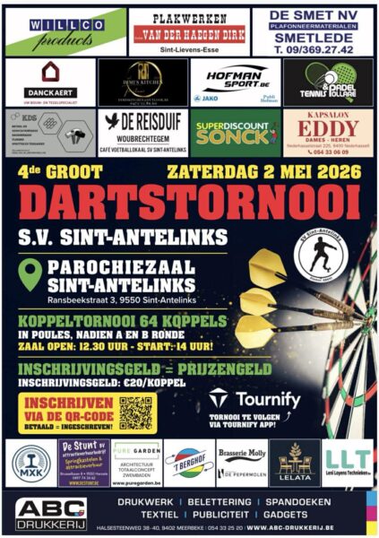 Voetbalclub S.V. Sint-Antelinks organiseert op zaterdag 2 mei 2026 voor de vierde keer haar inmiddels gevestigde dartstornooi. Na drie geslaagde edities, die telkens op heel wat enthousiasme konden rekenen, hoopt de club opnieuw tal van deelnemers en supporters te mogen verwelkomen in Sint-Antelinks.