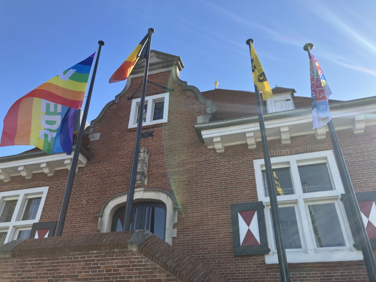 Sint-Lievens-Houtem hijst vredesvlag aan gemeentehuis op Internationale Dag van de Vrede.