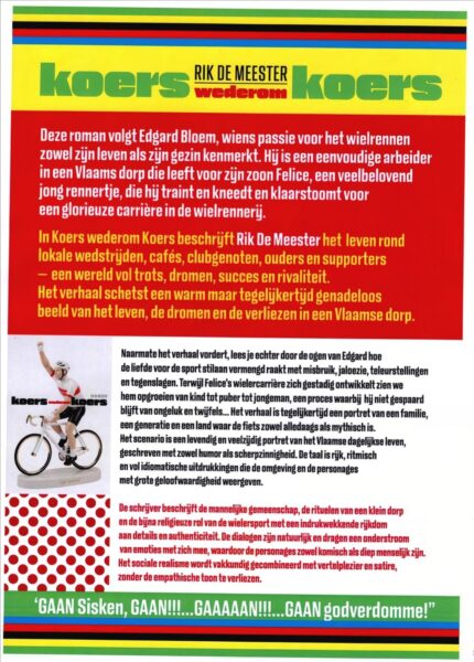 Met zijn roman bewijst Rik De Meester dat talent soms gewoon tijd nodig heeft om naar boven te komen. Wat begon als een manier om een moeilijke periode door te komen, groeide uit tot een krachtig en authentiek verhaal dat diep geworteld is in de Vlaamse cultuur. Zijn boek is meer dan een wielerverhaal: het is een spiegel van het leven, met al zijn schoonheid en hardheid. En misschien nog belangrijker: het toont dat passie, zelfs na tegenslag, nieuwe wegen kan openen.