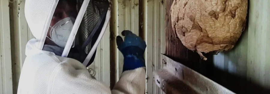• Stap 5: We komen langs om het nest te bestrijden. In bepaalde gevallen is bestrijding niet altijd mogelijk omdat bijvoorbeeld het nest te hoog hangt.