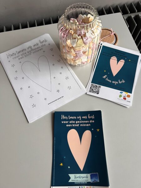 Zoals elk jaar wordt aan het Sociaal Huis de Koestervlag gehesen, het herkenbare symbool van steun en medeleven voor gezinnen die een kind moeten missen. Binnen in de inkomhal ligt een tafel met kleurplaten en een bokaal hartvormige snoepjes. Bezoekers kunnen een tekening meenemen om thuis, met kinderen of kleinkinderen, verdriet bespreekbaar te maken. Het zijn kleine, toegankelijke initiatieven die bijdragen aan meer openheid en verbondenheid.